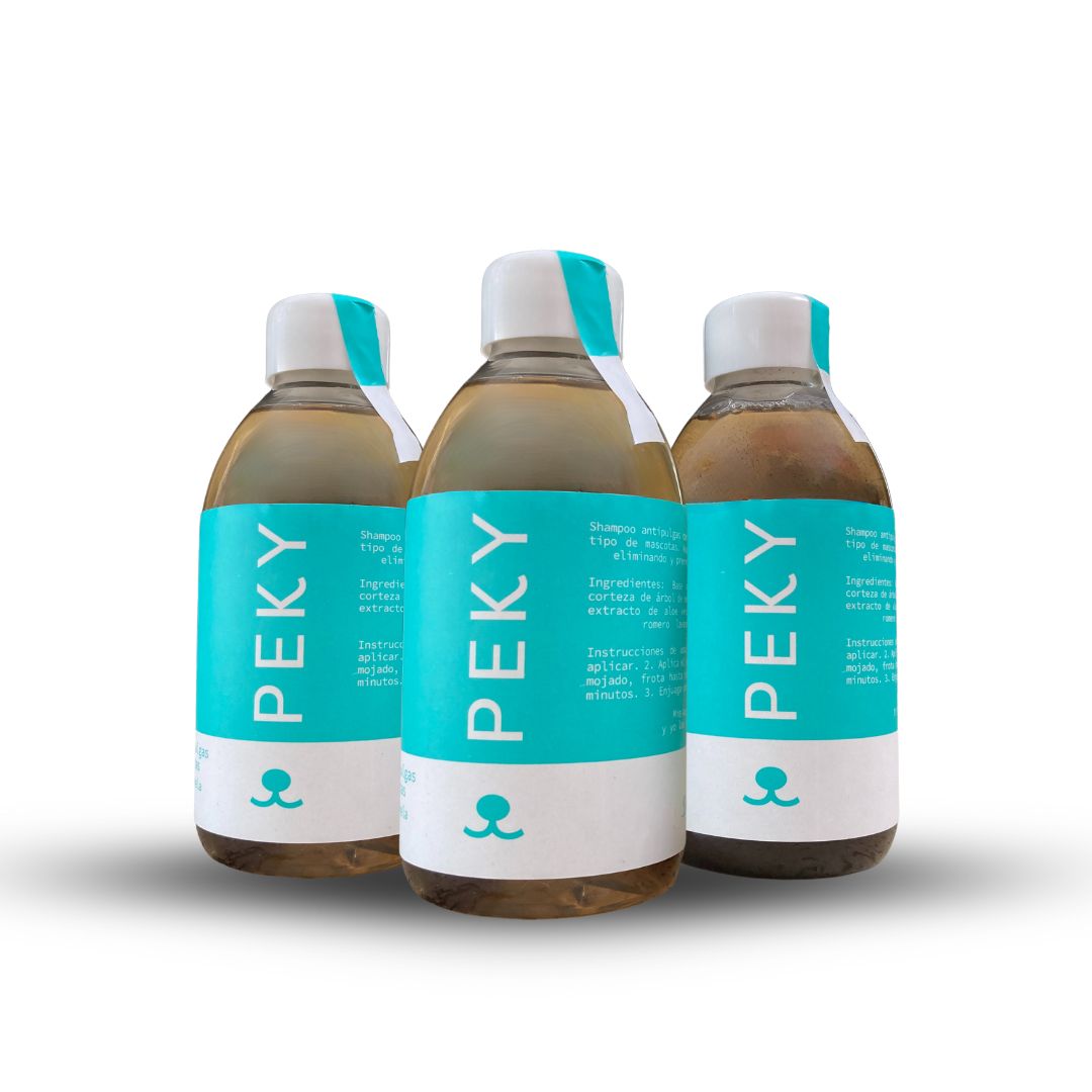 Shampoo Peky $175Presentación 250 ml Shampoo Peky Antipulgas $190Presentación 250 ml Kit Shampoo Peky $2993 Frascos 250ml Kit Shampoo Antipulgas $2993Frascos 250ml